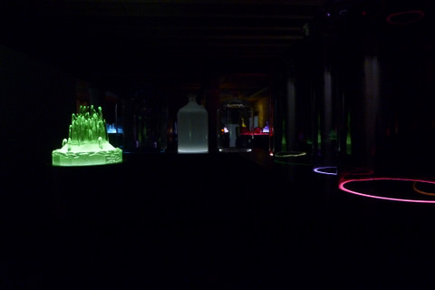 | まばゆいばかりの自然光 | となりは暗室の中に光る作品 | 日本人アーティスト村上隆さんの作品 |