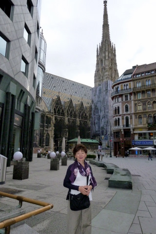 | ウィーン 1年ぶりのウィーンの街は、8月とはいえ、ベニスとは違って気温20度を切る涼しさ、 一番賑やかなケルントナー通りも、去年から続いていた工事も終わり様子が少し変わっていました。 まず、ハイヒールに傷がつくと女性に不評だった昔ながらの石畳が姿を消し、コンクリート・タイルに変身。 歩き疲れた人が腰を下ろせるベンチも設置され、伸びすぎていた街路樹も低い木に変えられていました。 |