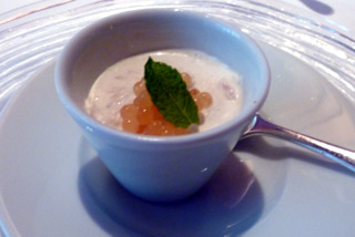 | ここにご覧いただきましたのがこの日のディナーですが、私の感想はこれまでのオーストリアの料理に 比べると繊細で香りがよく、深い味わいでした。 良質のオイル、フルーツ・ビネガー、岩塩、フレッシュ・ハーブやスパイス等を使い、色合いや盛り付けが 細やかでおいしく、食感が軽く、よく研究された料理という感じでした。 さすが世界中から食通がこのレストランを目指してこの町に来るという、味覚のセンスに感心したディナーでした。 |